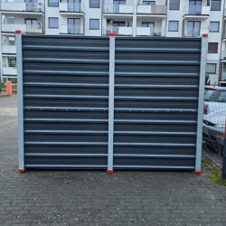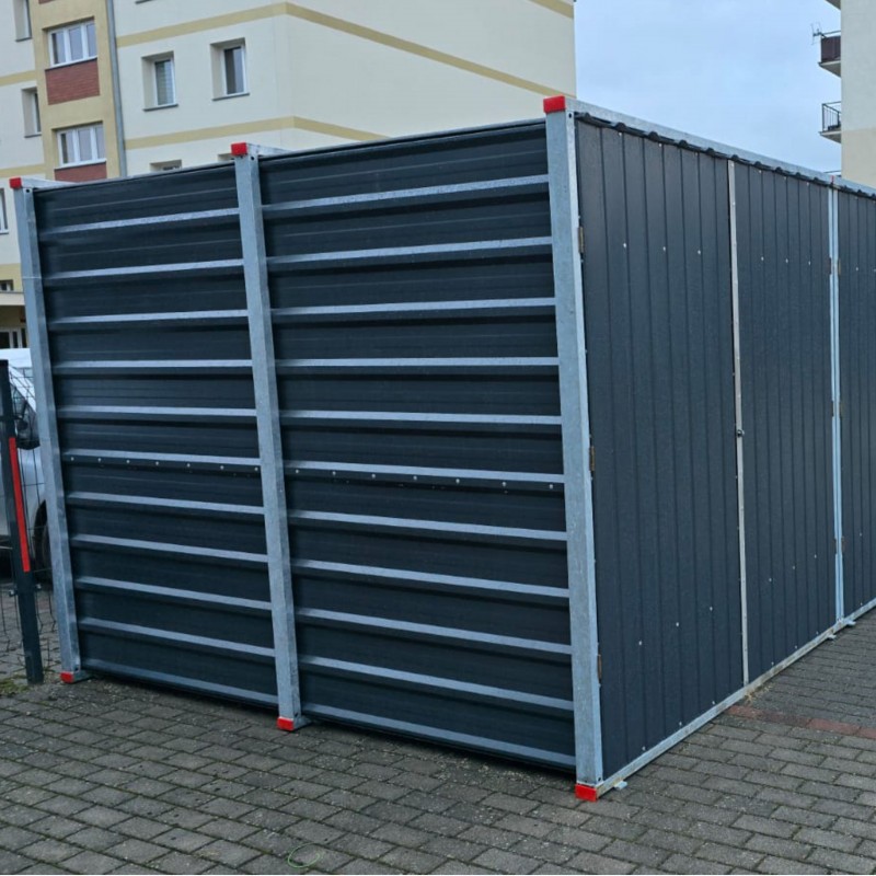 ✔ Drzwi: dwuskrzydłowe, blacha trapezowa T-35 RAL7016, możliwość zamknięcia na kłódkę