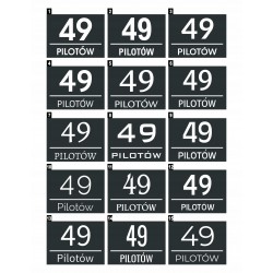Na tabliczce w miejscowościach posiadających ulice, place, osiedla umieszcza się oprócz numeru porządkowego również nazwę ulicy, placu lub osiedla. W miejscowościach nieposiadających ulic, placów, osiedli oprócz numeru porządkowego umieszcza się nazwę miejscowości.