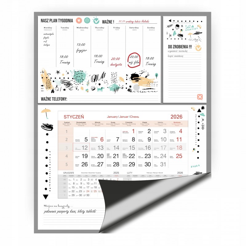 ✅ Planer magnetyczny + kalendarium 12-miesięczny (2026) | odrywane 12 kartek