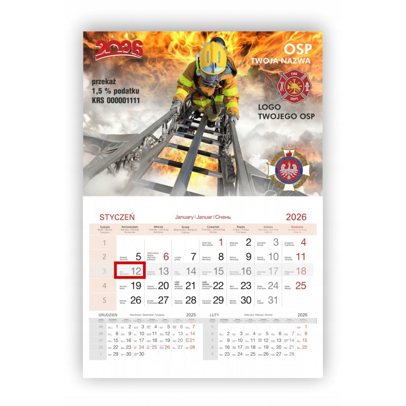 Kalendarz OSP 2026 z indywidualną główką!