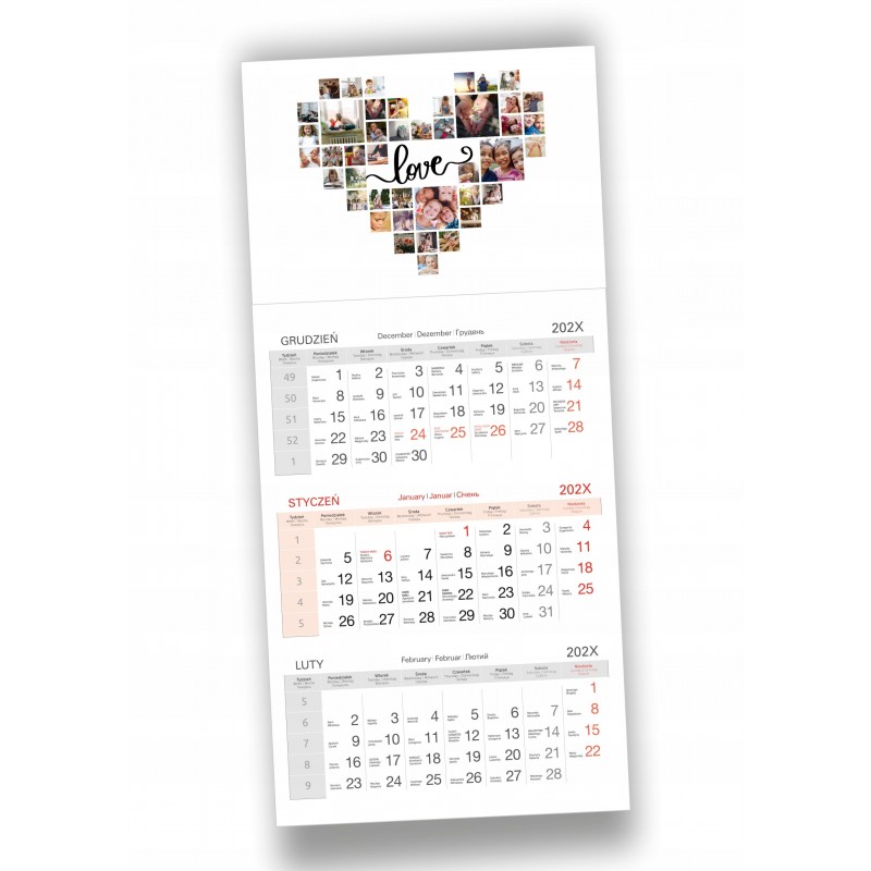Stwórz niepowtarzalny kalendarz trójdzielny z własnym zdjęciem i napisem – idealny do biura, domu lub gabinetu.