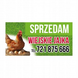 Baner jest gotowy do powieszenia, zaoczkowany, zgrzany i wzmocniony po brzegach podwójnie materiałem.