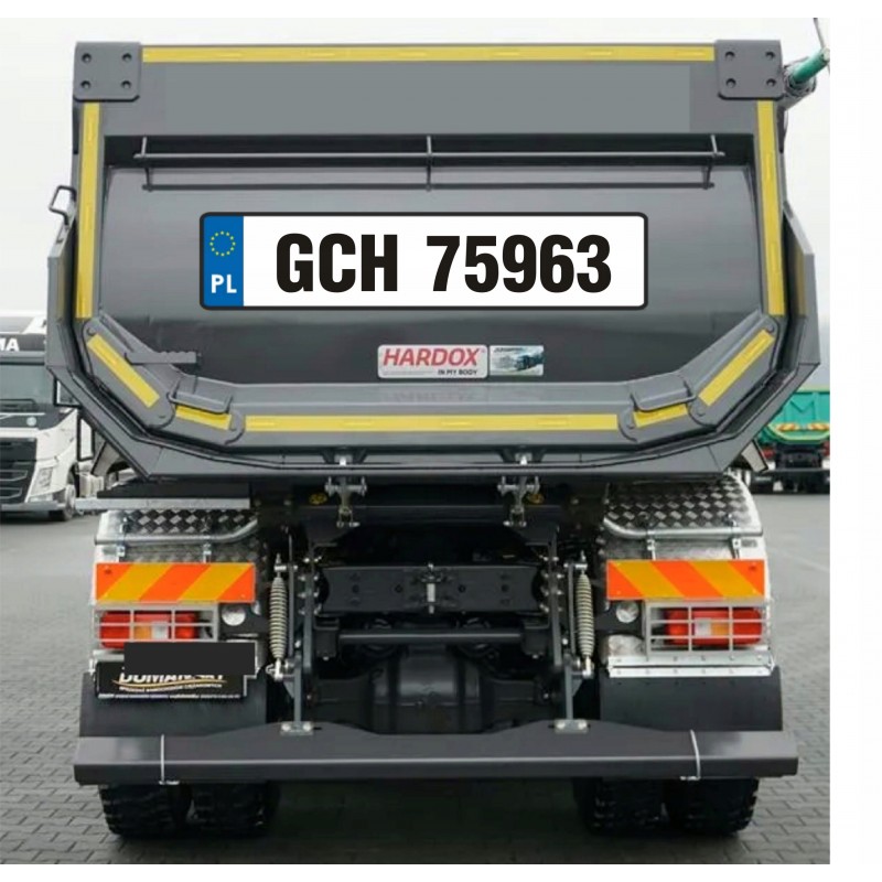 Nasza naklejka idealnie sprawdzi się na samochodach, przyczepach, maszynach czy szybach – wszędzie tam, gdzie potrzebne jest czytelne i trwałe oznaczenie pojazdu.