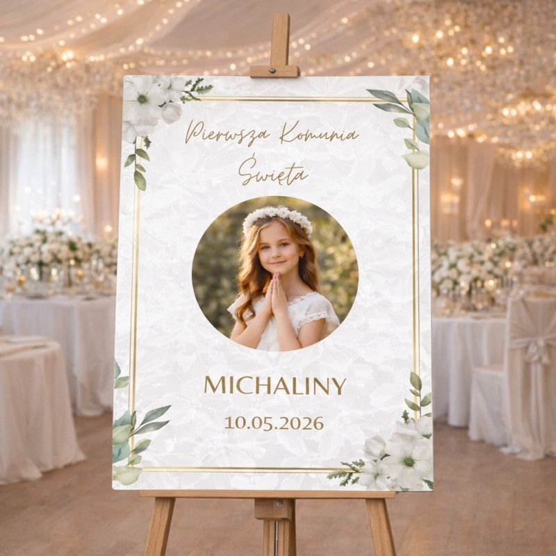 Personalizowana tablica powitalna to stylowy element dekoracyjny, który podkreśli charakter Waszej uroczystości i zachwyci gości już od wejścia.