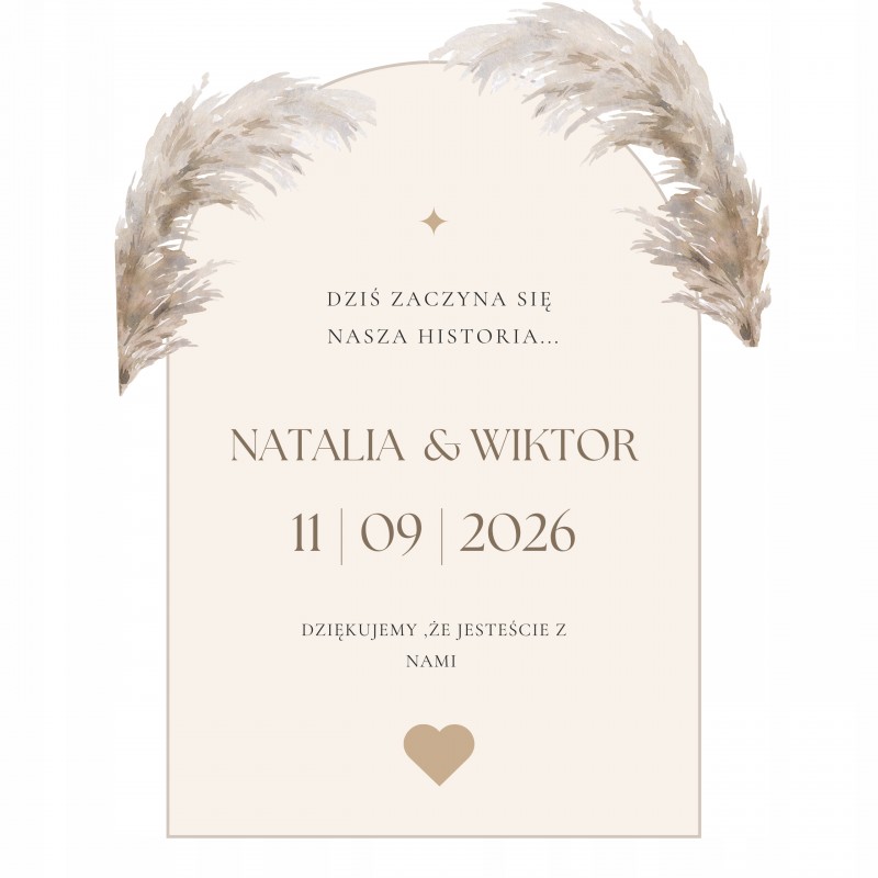 • ewentualny tekst (np. „Witamy na naszym weselu”)