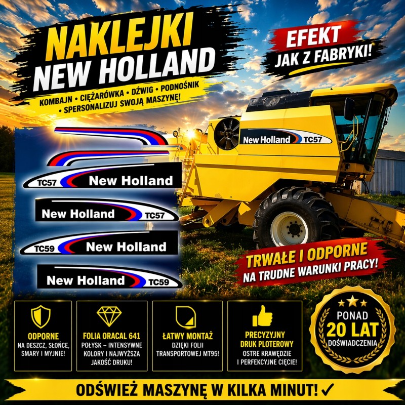 Postaw na profesjonalne naklejki NEW HOLLAND, które nadadzą sprzętowi świeży, fabryczny wygląd ✨