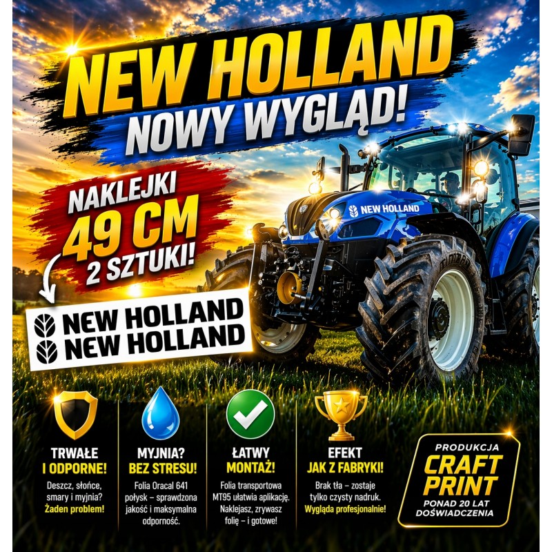 Postaw na profesjonalne naklejki NEW HOLLAND, które nadadzą sprzętowi świeży, fabryczny wygląd ✨