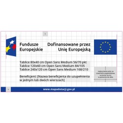 Jeśli realizujesz projekt obejmujący działania w zakresie infrastruktury, a umieszczenie tablicy o wymiarach 240x120 cm według opinii organu zarządzającego daną infrastrukturą (miejscem, gdzie umieścisz tablicę) nie jest możliwe ze względów technicznych lub bezpieczeństwa itp., za zgodą instytucji przyznającej dofinansowanie możesz umieścić tablicę informacyjną o wymiarach 120x60 cm.
